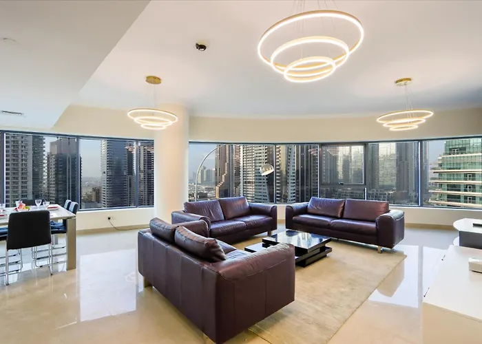 Spacious 3 Bedroom Suite With Marina View - Near Marina Mall está situado en el distrito Marina de Dubái, a poca distancia de The Walk at JBR. Los huéspedes pueden llegar fácilmente a Dubai Water Canal, situado a tan solo 5 minutos a pie.
